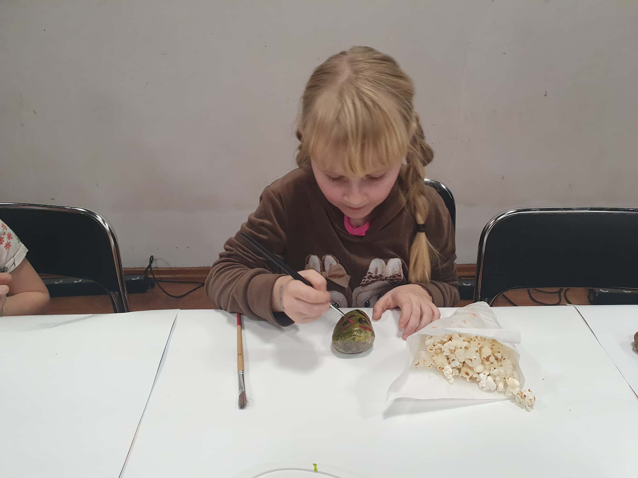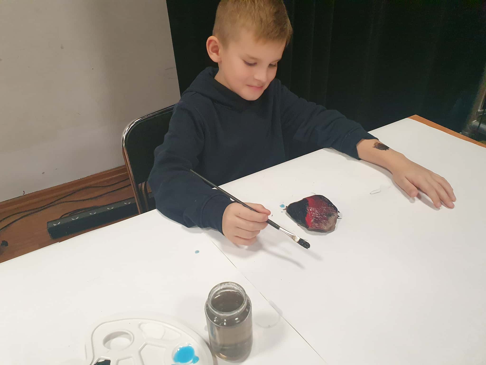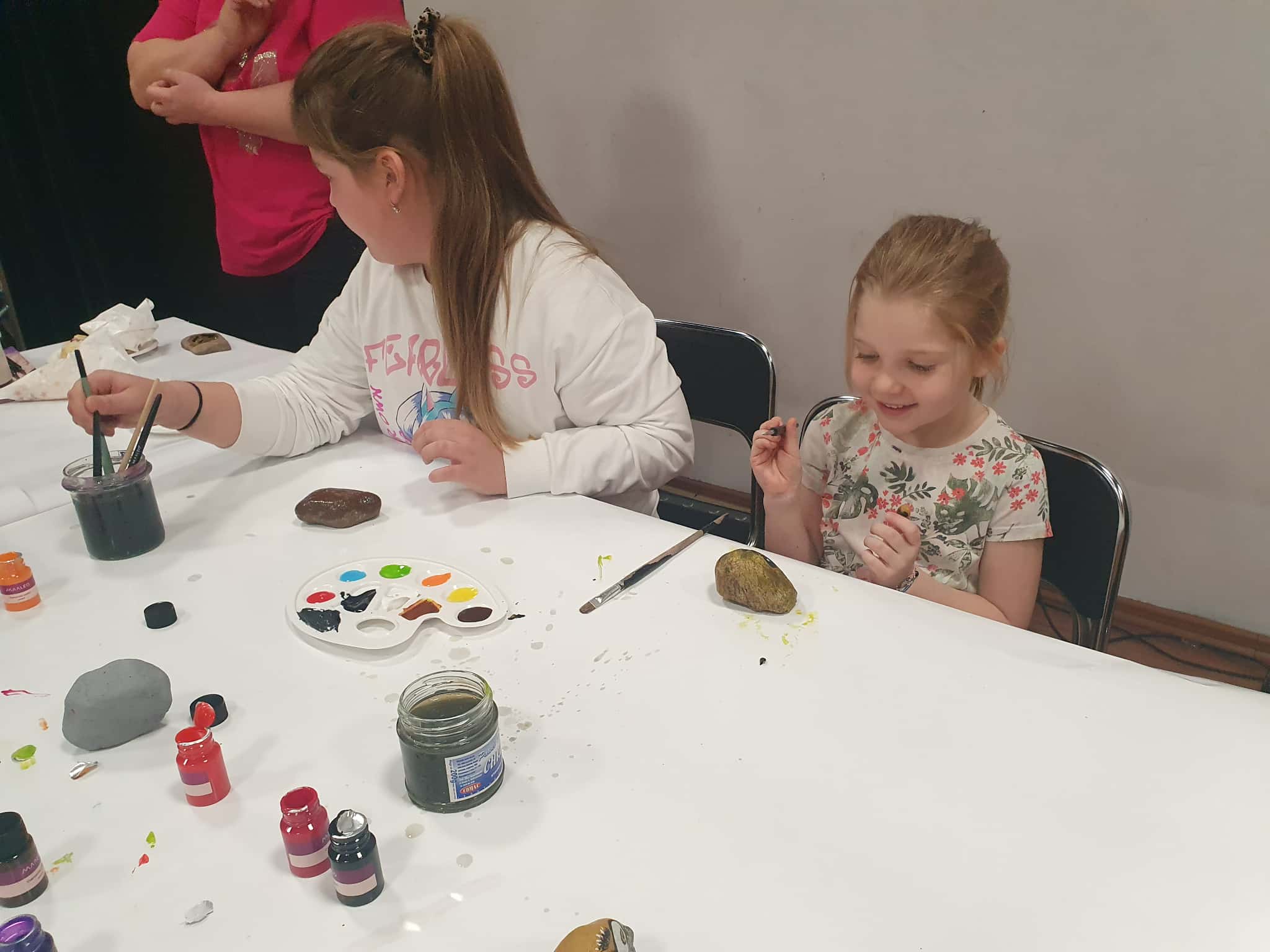 Poza tym dzieci mogły wziąć udział w zabawach i konkursach, a także w warsztatach malowania kamieni. Dla wszystkich uczestników imprezy była dostępna kawiarenka, gdzie można było skosztować gorącej czekolady, popkornu, kawy, herbaty i ciasta.